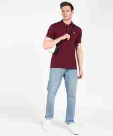 TAZO Men Solid Polo Neck Cotton Blend Maroon T-Shirt