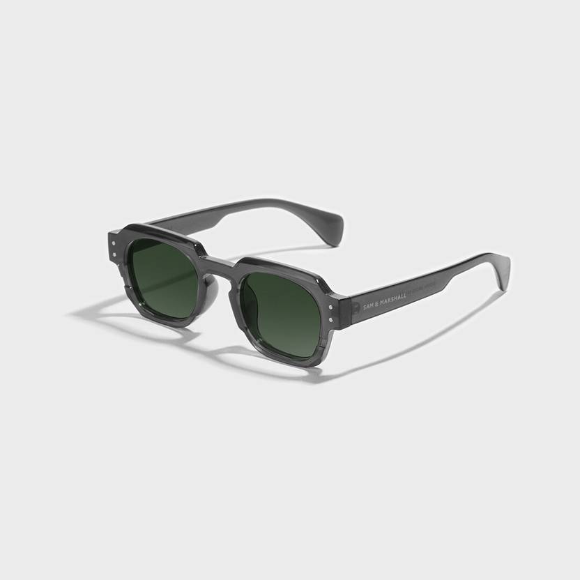 Meet Elucid sunglasses: octagon-shaped transparent frames perfect for all genders. Featuring medium-sized design and black lenses providing 400% UV protection, seamlessly blending style with safety.