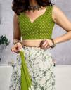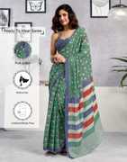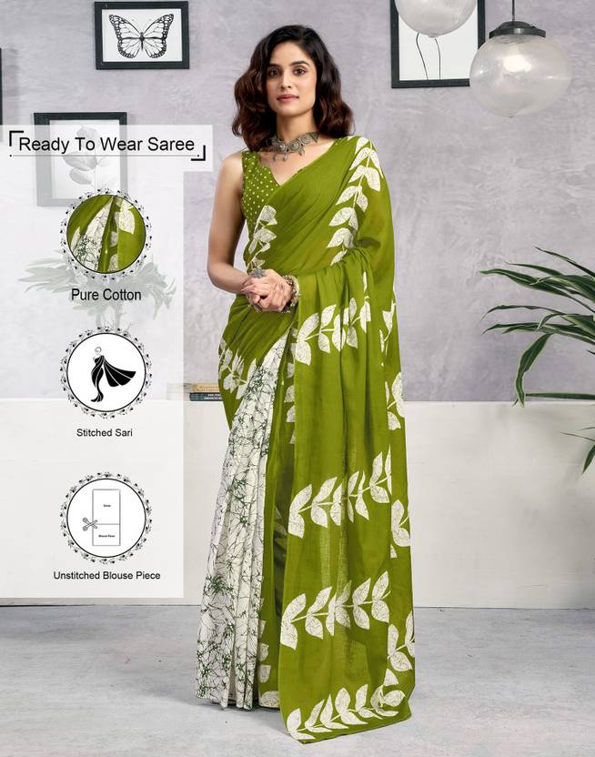 Pure Cotton Printed GreenReady To Wear Saree With Blouse