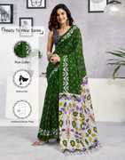 Explore the collection of beautifully designed sarees from Samah Sarees On Flipkart. Saree Fabric : Pure Cotton & Blouse Fabric : Pure Cotton :: Saree Color : Green & Blouse Color : Green, White :: Saree Work :Printed & Blouse Work : Bandhani Printed