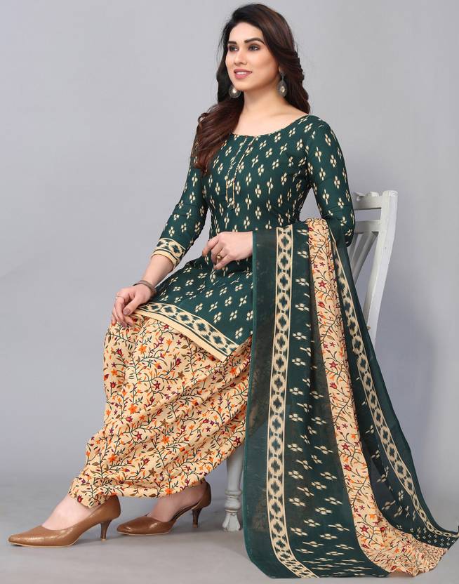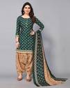 Flaunt a new ethnic look with this dress material/salwar suit. This Poly Cotton suit is beautifully adorned with Printed work comes along with bottom and dupatta makes it appear more adorning.You can buy this suit to wear for their upcoming festivals, homely functions, parties, kitties, weekend get together. Get this unstitched suit and stitch according to your fit and comfort. Team it with stylish accessories to make your looks more beautiful. Top Fabric : Poly Cotton , Bottom Fabric : Poly Cotton , Dupatta Fabric : Poly Cotton :: Top Color : Bottle Green , Bottom Color : Beige , Dupatta Color : Beige, Multi :: Dress Work : Printed :: Stitched Type : Unstitched