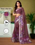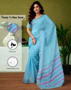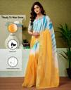 Linen Zari Border, Printed Turmeric Yellow, Blue Color Redy To Wear Saree