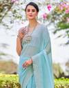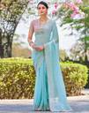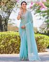 Georgette Zari Work, Embroidery, Piping Light Blue color Saree With Blouse