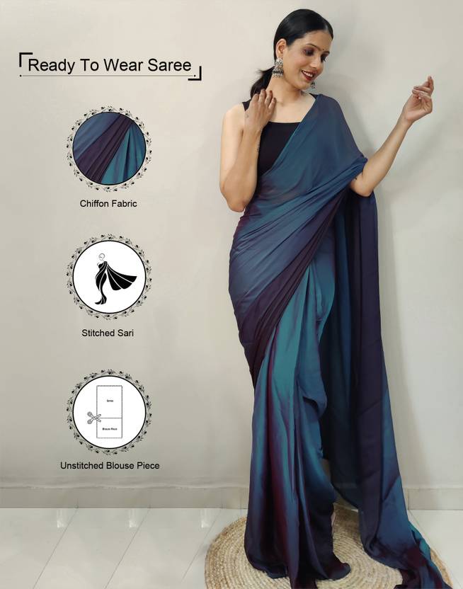 Chiffon Ready To Wear & Dyed (Dual Tone) Blue Color Saree With Blouse Piece