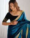 Explore the collection of beautifully designed sarees from Samah Sarees Saree Fabric : Shimmer Net & Blouse Fabric : Velvet :: Saree Color : Rama Blue & Blouse Color : Black :: Saree Work :Sequins And Embroidery Border & Blouse Work : Sequins And Embroidery Border