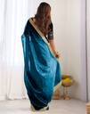 Shimmer Net Sequins And Embroidery Border Rama Blue Color Saree With Blouse