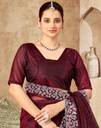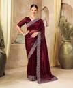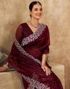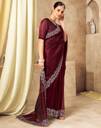 Shimmer Net Embroidery, Scalloped Stone Border Maroon Color Saree With Blouse