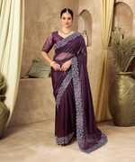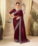 Explore the collection of beautifully designed sarees from Samah Sarees. Saree Fabric : Shimmer Net & Blouse Fabric : Shimmer Net :: Saree Color : Maroon & Blouse Color : Maroon :: Saree Work :Embroidery, Scalloped Border, Stone Work & Blouse Work : Top Dyed