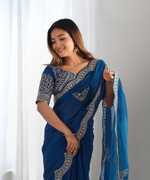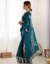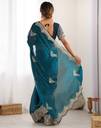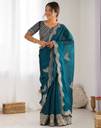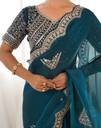 Explore the collection of beautifully designed sarees from Samah Sarees . Saree Fabric : Organza & Blouse Fabric : Bhagalpuri Silk :: Saree Color : Rama Green & Blouse Color : Rama Green :: Saree Work :Dyed, Sequin Embroidery, Scollped Border & Blouse Work : Dyed, Sequin Embroidery