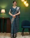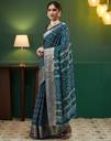 Silk Bandhani Printed, Weaving Border Rama Blue Color Saree With Blouse