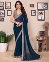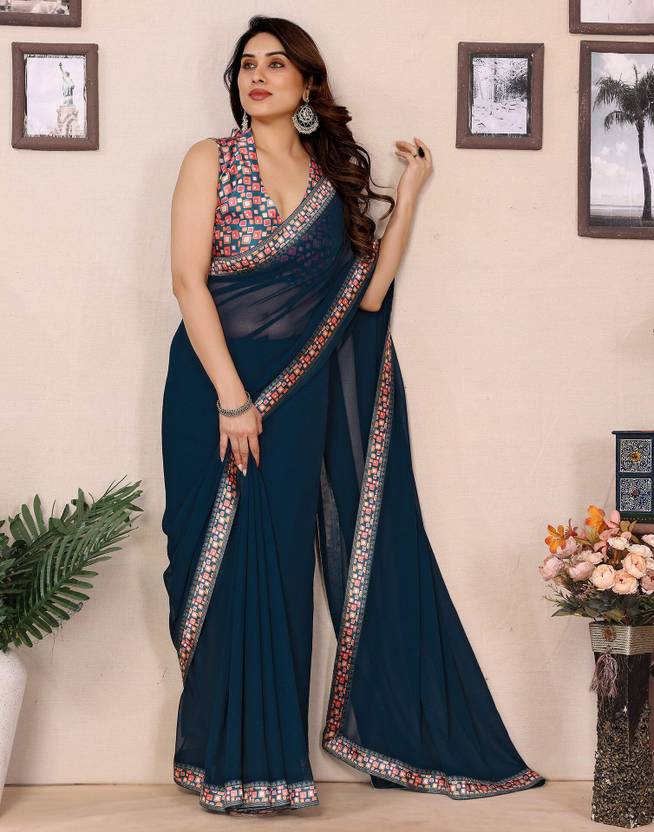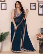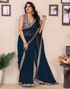 Georgette Lace & Dyed Rama Blue Color Saree With Blouse