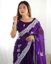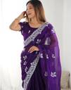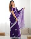 Shimmer Chiffon Embroidery And Sequin Work Dark Purple Color Saree With Blouse