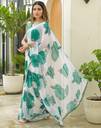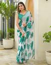 Explore the collection of beautifully designed sarees from Samah Sarees. Saree Fabric : Chiffon & Blouse Fabric : Silk :: Saree Color : Off-White & Blouse Color : Teal Green :: Saree Work :Printed, Lace & Blouse Work : Dyed, Lace