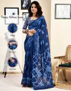 Explore the collection of beautifully designed sarees from Samah Sarees On site . Saree Fabric : Pure Cotton & Blouse Fabric : Pure Cotton :: Saree Color : Navy Blue & Blouse Color : Navy Blue :: Saree Work :Printed & Blouse Work : Printed