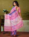 Chanderi Cotton Printed Pink, Blue Color Redy To Wear Saree With Blouse
