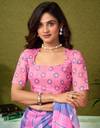 Explore the collection of beautifully designed sarees from Samah Sarees. Saree Fabric : Chanderi Cotton & Blouse Fabric : Chanderi Cotton :: Saree Color : Pink & Blouse Color : Pink, White, Blue :: Saree Work :Printed (Redy To Wear) & Blouse Work : Printed
