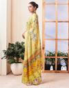 Linen Floral Printed Yellow Ready To Wear With Blouse Piece