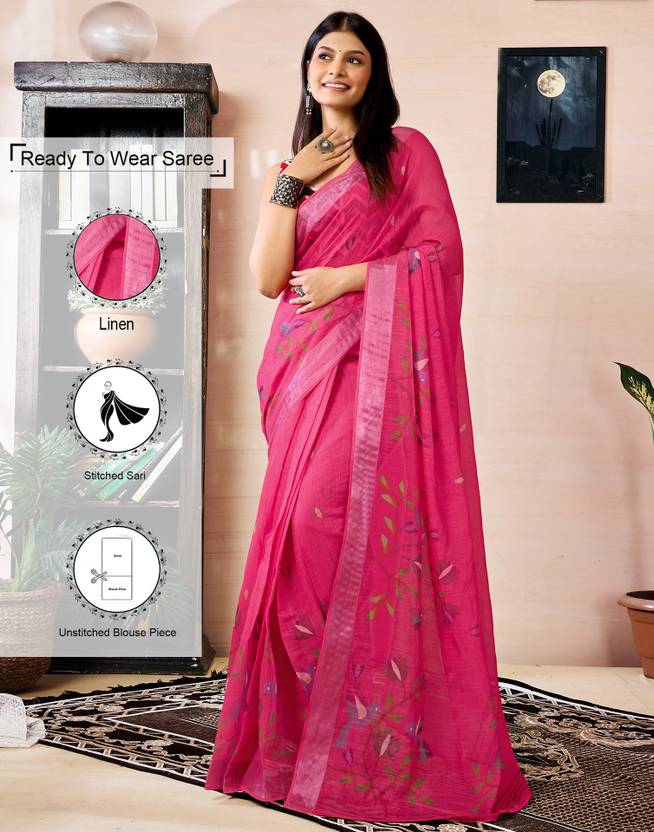 Explore the collection of beautifully designed sarees from Samah Sarees On Flipkart. Saree Fabric : Linen & Blouse Fabric : Linen :: Saree Color : Dark Pink & Blouse Color : Red, Multi :: Saree Work :Printed, Zari Border (Ready To Wear) & Blouse Work : Printed, Zari Border