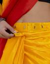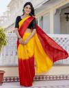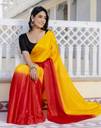 This saree from the house of Samah is made from Chinnon and is Yellow, Red in color. Samah Ethnic Sarees comes With Blouse Piece,Which can be Stitched according to Your Taste and Preference.This Saree is Crafted by Skill Craftsmen without Compromising on its Quality.With This Beautiful Design and Fabric, This Saree will fetch You Oodles of Compliments and Praise. saree fit size is 5.50Mtr saree & 0.80Mtr blouse, Free Size .