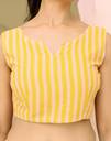 Explore the collection of beautifully designed sarees from Samah. Saree Fabric : Georgette & Blouse Fabric : Georgette :: Saree Color : Dark Cream & Blouse Color : Yellow, Dark Cream :: Saree Work :Printed, Ready To Wear, Tassels & Blouse Work : Printed