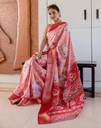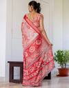 This saree from the house of Samah is made from Dola Silk and is Peach, Red, Multi in color. Samah Ethnic Sarees comes With Blouse Piece,Which can be Stitched according to Your Taste and Preference.This Saree is Crafted by Skill Craftsmen without Compromising on its Quality.With This Beautiful Design and Fabric, This Saree will fetch You Oodles of Compliments and Praise. saree fit size is 5.30Mtr saree & 0.80Mtr blouse, Free Size .