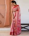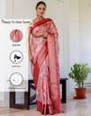 Dola Silk Floral Printed & Woven Zari Stripe PeachReady To Wear Saree