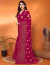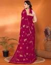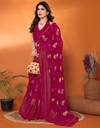 Explore the collection of beautifully designed sarees from Samah Sarees. Saree Fabric : Georgette & Blouse Fabric : Georgette :: Saree Color : Rani Pink & Blouse Color : Rani Pink :: Saree Work :Foil Print, Lace, Tassels & Blouse Work : Lace, Dyed
