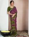 Chiffon Bandhani Printed & Lace & Tassels Wine & Olive Green Color Saree