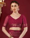 Georgette Foil Printed & Lace & Tassels Rani Pink Color Saree With Blouse