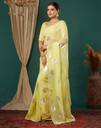 Explore the collection of beautifully designed sarees from Samah. Saree Fabric : Georgette & Blouse Fabric : Bhagalpuri Silk :: Saree Color : Yellow & Blouse Color : Yellow :: Saree Work :Foil Print, Lace & Blouse Work : Lace