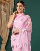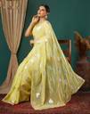 Samah Printed, Embellished Bollywood Georgette Saree (Yellow, Silver)