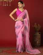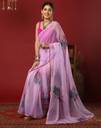 Explore the collection of beautifully designed sarees from Samah Sarees On . Saree Fabric : Georgette & Blouse Fabric : Bhagalpuri Silk :: Saree Color : Light Purple & Blouse Color : Magenta :: Saree Work :Printed, Foil Printed, Lace & Blouse Work : Lace, Dyed