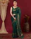 Explore the collection of beautifully designed sarees from Samah Sarees. Saree Fabric : Georgette & Blouse Fabric : Georgette :: Saree Color : Dark Green & Blouse Color : Dark Green, Golden :: Saree Work :Foil Printed, Lace, Tassels & Blouse Work : Foil Printed