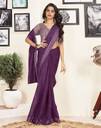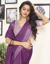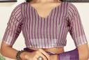 Cotton Printed & Zari Stripe Deep Purple Ready To Wear saree With Blouse Piece
