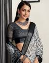 This saree from the house of Samah is made from cotton blend and is light grey, black in color. Samah ethnic sarees comes with blouse piece,which can be stitched according to your taste and preference.This saree is crafted by skill craftsmen without compromising on its quality.With this beautiful design and fabric, this saree will fetch you oodles of compliments and praise. Saree fit size is 5.3M mtr saree & 0.8 Mtr blouse, free size .