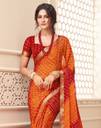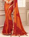 Chiffon Lace & Tassel & Bandhani Printed Orange & Red Color Saree With Blouse