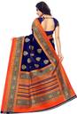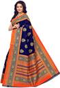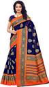 Poly Silk Printed Navy Blue Color Saree With Blouse Piece