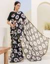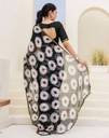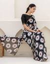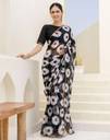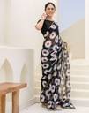 Explore the collection of beautifully designed sarees from Samah Sarees. Saree Fabric : Chiffon & Blouse Fabric : Bhagalpuri Silk :: Saree Color : Black & Blouse Color : Black :: Saree Work :Floral Printed, Lace & Blouse Work : Lace