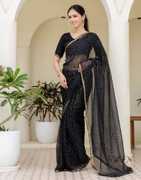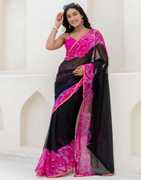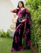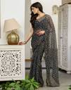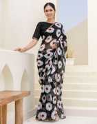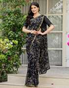 Explore the collection of beautifully designed sarees from Samah Sarees. Saree Fabric : Chiffon & Blouse Fabric : Bhagalpuri Silk :: Saree Color : Black & Blouse Color : Black :: Saree Work :Printed, Lace & Blouse Work : Lace