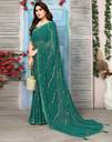 Georgette Foil Printed & Lace & Tassel Green Color Saree With Blouse Piece