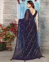Georgette Foil Printed & Lace & Tassel Navy Blue Color Saree With Blouse Piece