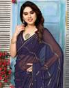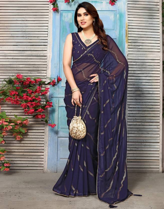 Explore the collection of beautifully designed sarees from Samah Sarees. Saree Fabric : Georgette & Blouse Fabric : Georgette :: Saree Color : Navy Blue & Blouse Color : Navy Blue :: Saree Work :Foil Printed & Lace & Tassel & Blouse Work : Foil Printed & Lace