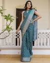 Explore the collection of beautifully designed sarees from Samah Sarees. Saree Fabric : Dola Silk & Blouse Fabric : Dola Silk :: Saree Color : Dusty Rama Green & Blouse Color : Dusty Rama Green, White :: Saree Work :Bandhani Printed, Woven Zari Stripe, Woven Border & Blouse Work : Bandhani Printed, Woven Zari Stripe, Woven Border