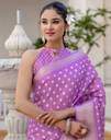 Explore the collection of beautifully designed sarees from Samah Sarees. Saree Fabric : Dola Silk & Blouse Fabric : Dola Silk :: Saree Color : Light Purple & Blouse Color : Light Purple :: Saree Work :Bandhani Printed, Woven Zari Stripe, Woven Border & Blouse Work : Bandhani Printed, Woven Zari Stripe, Woven Border