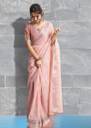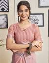 Cotton Printed & Zari Stripe (Ready To Wear) Rose Pink Saree With Blouse Piece