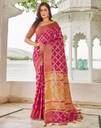 Cotton Silk Bhagalpuri Woven Work Pink Color Saree With Blouse Piece