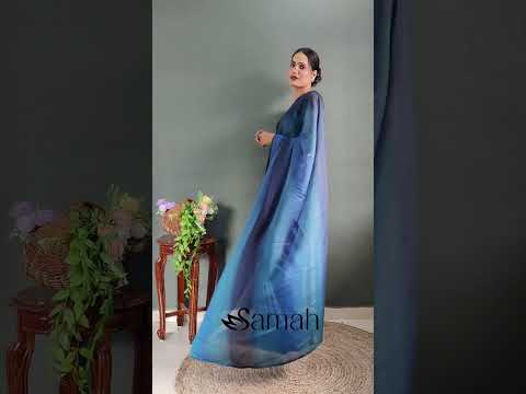 Samah Ready to Wear Solid/Plain, Ombre, Embellished Bollywood Georgette, Chiffon Saree Blue