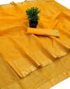 Explore the collection of beautifully designed sarees from Samah Sarees. Saree Fabric : Cotton Silk & Blouse Fabric : Cotton Silk :: Saree Color : Yellow & Blouse Color : Yellow :: Saree Work :Gold Stripes (Kota Doria) & Blouse Work : Gold Strips