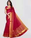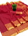 Cotton Silk Gold Stripes (Kota Doria) Red Color Saree With Blouse Piece