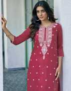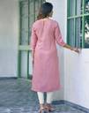 Samah is well known brand of amazing range of women's ethnic wear in soft and solid colors that looks perfect for any occassion.With beautiful designs and patterns our apparels are very stylish and comfortable too.Get rid of the 'regular' look this season wearing this trending kurta by Samah.This Straight Calf Length Rose Pink colored Chikan Embroidery::Embellished::Dyed kurta comes with 3/4 Sleeve and Round Neck.Kurta Fabric : Cotton Slub , Kurta Work : Chikan Embroidery::Embellished::Dyed , Kurta Color : Rose Pink
